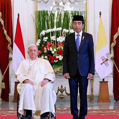 Berhadapan dengan tantangan-tantangan yang disebutkan di atas, adalah sesuatu yang memberanikan bahwa falsafah yang menuntun ketatanegaraan Indonesia sungguh seimbang sekaligus bijaksana. Terkait hal ini, saya ingin menjadikan kata-kata dari Santo Yohanes Paulus II dalam kunjungannya tahun 1989 di istana ini sebagai perkataan saya. Di antara hal-hal lain, beliau berkata: “Dengan mengakui kehadiran keanekaragaman yang sah, dengan menghargai hak-hak manusia dan politik dari semua warga, dan dengan mendorong pertumbuhan persatuan nasional berlandaskan toleransi dan sikap saling menghargai terhadap orang lain, Anda meletakkan fondasi bagi masyarakat yang adil dan damai, yang diinginkan semua warga Indonesia untuk diri mereka sendiri dan rindu untuk diwariskan kepada anak-anak mereka” (Pidato kepada Presiden Republik Indonesia dan Para Pejabat Sipil, Jakarta, 9 Oktober 1989).